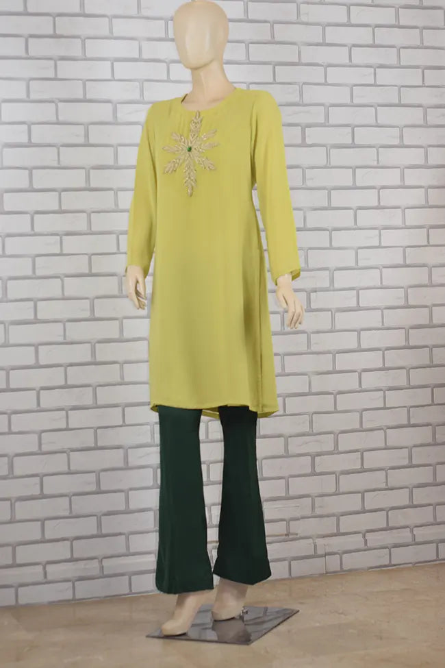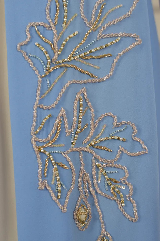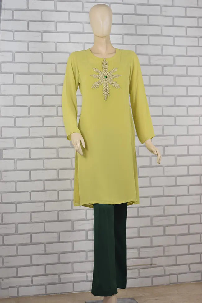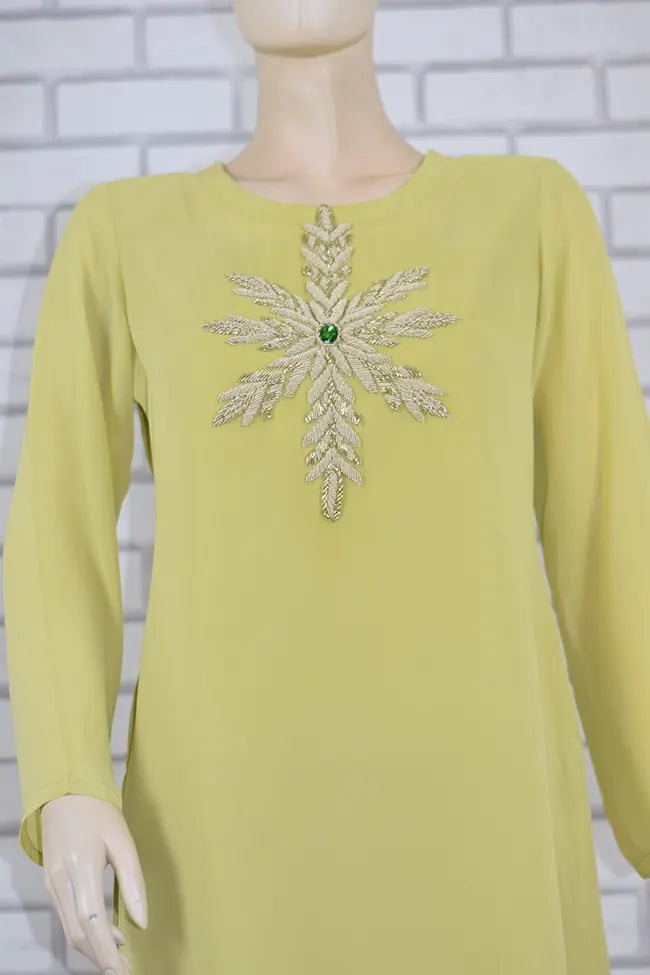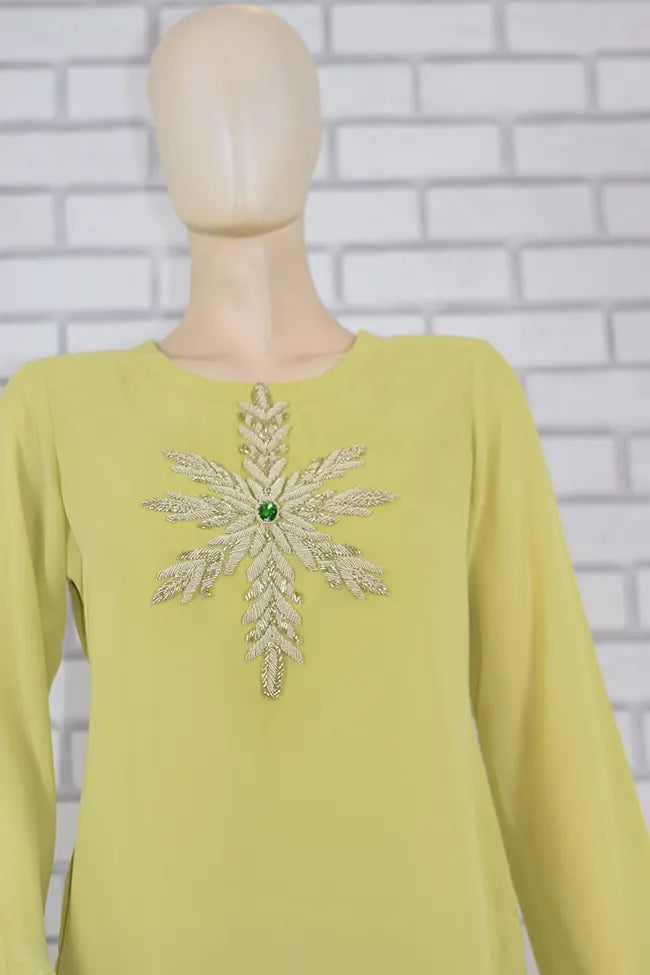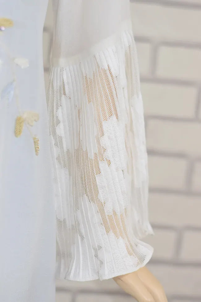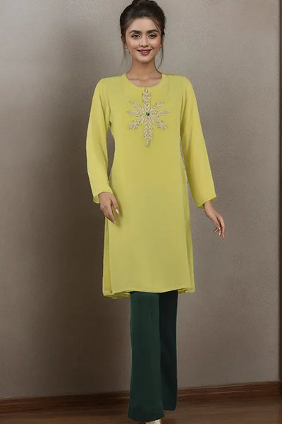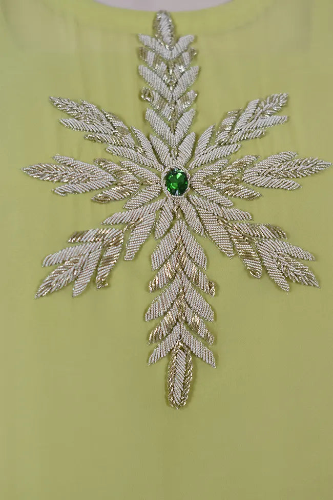 Imagine slipping into the comfortable inner, then layering it with the exquisite open jacket. The luxuriously soft, breathable fabric feels light as air, making it perfect for Karachi's summer evenings. All eyes will be on the delicate floral embroidery on the jacket—a masterful blend of intricate threadwork and glistening kora that catches the light with every move.